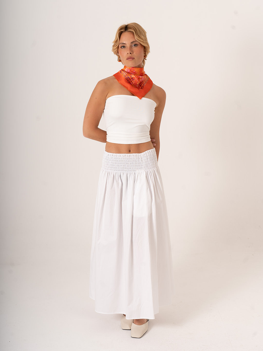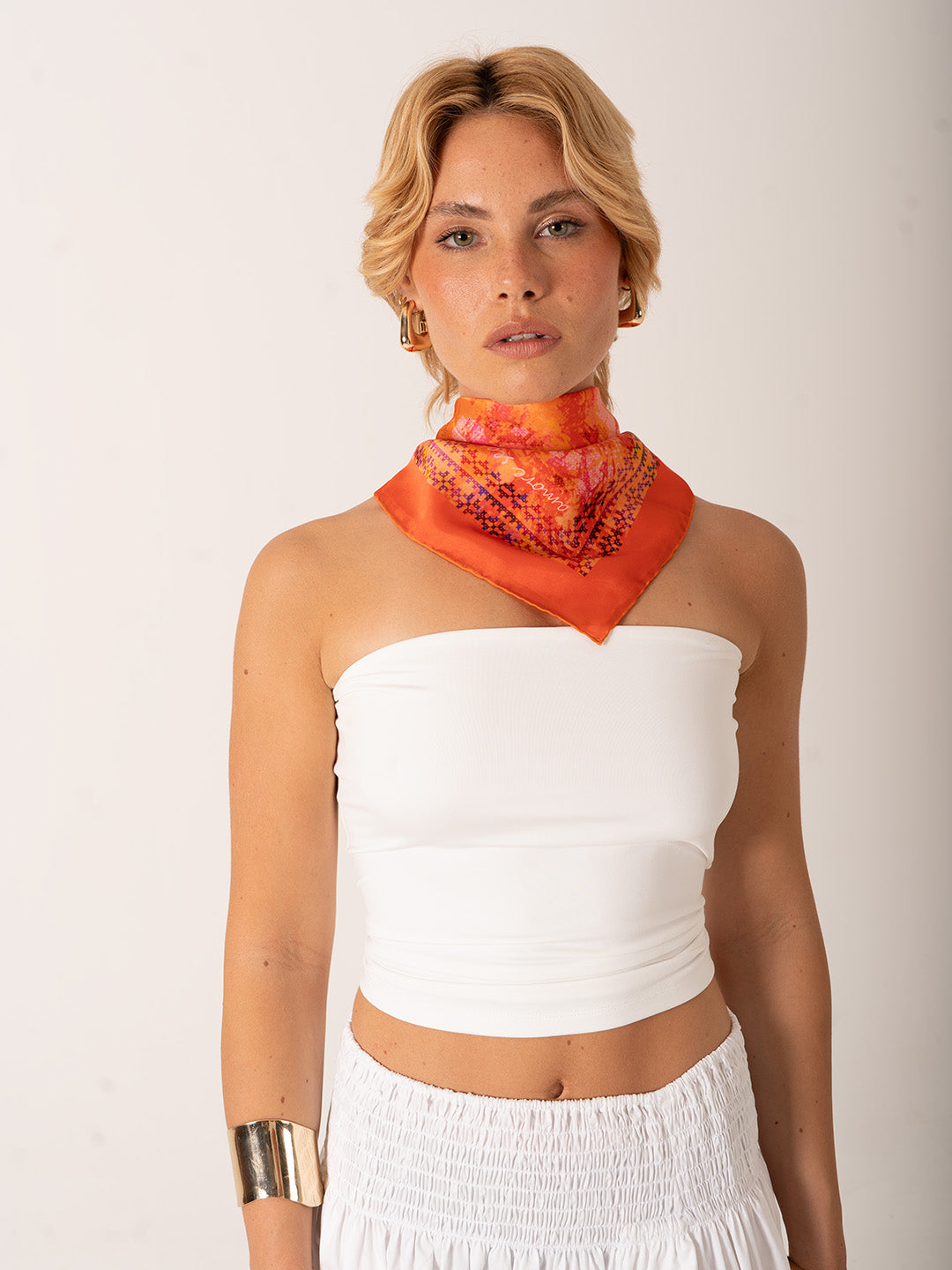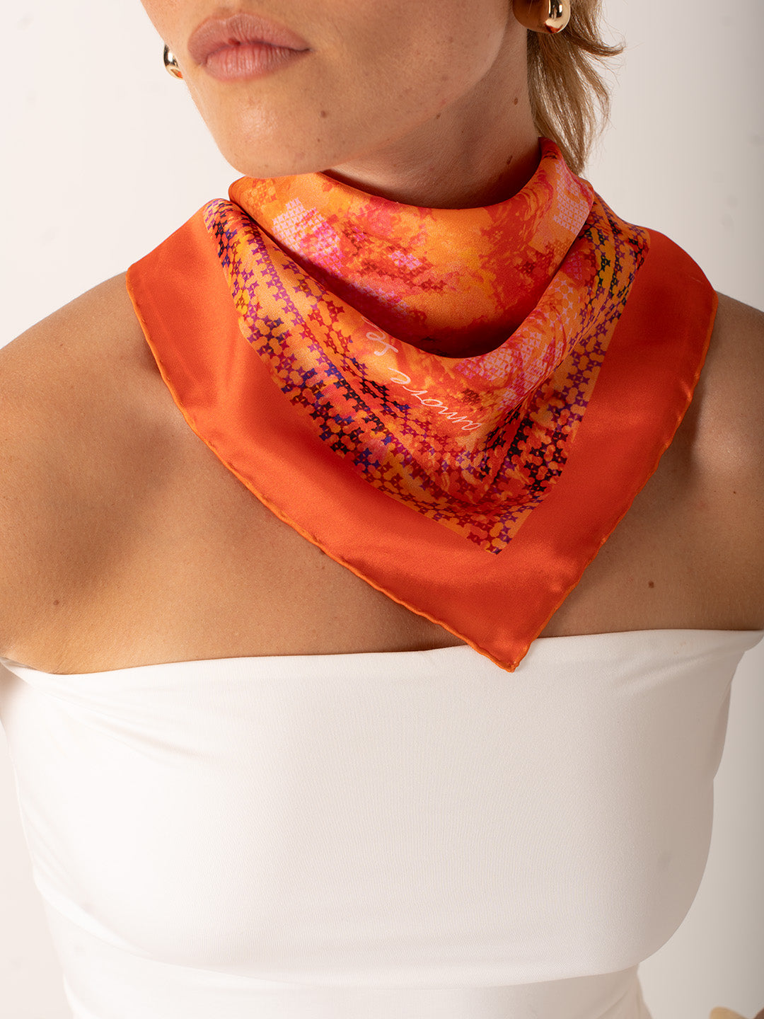 Şifon saten kumaşı sayesinde hafif, yumuşak ve dökümlüdür. 68x68 cm ölçüsüyle boyun fuları, saç bandı ya da çanta süsü olarak farklı şekillerde kullanıma uygundur. Günlük kombinlere zarafet katmak isteyen kadınlar için tasarlandı.