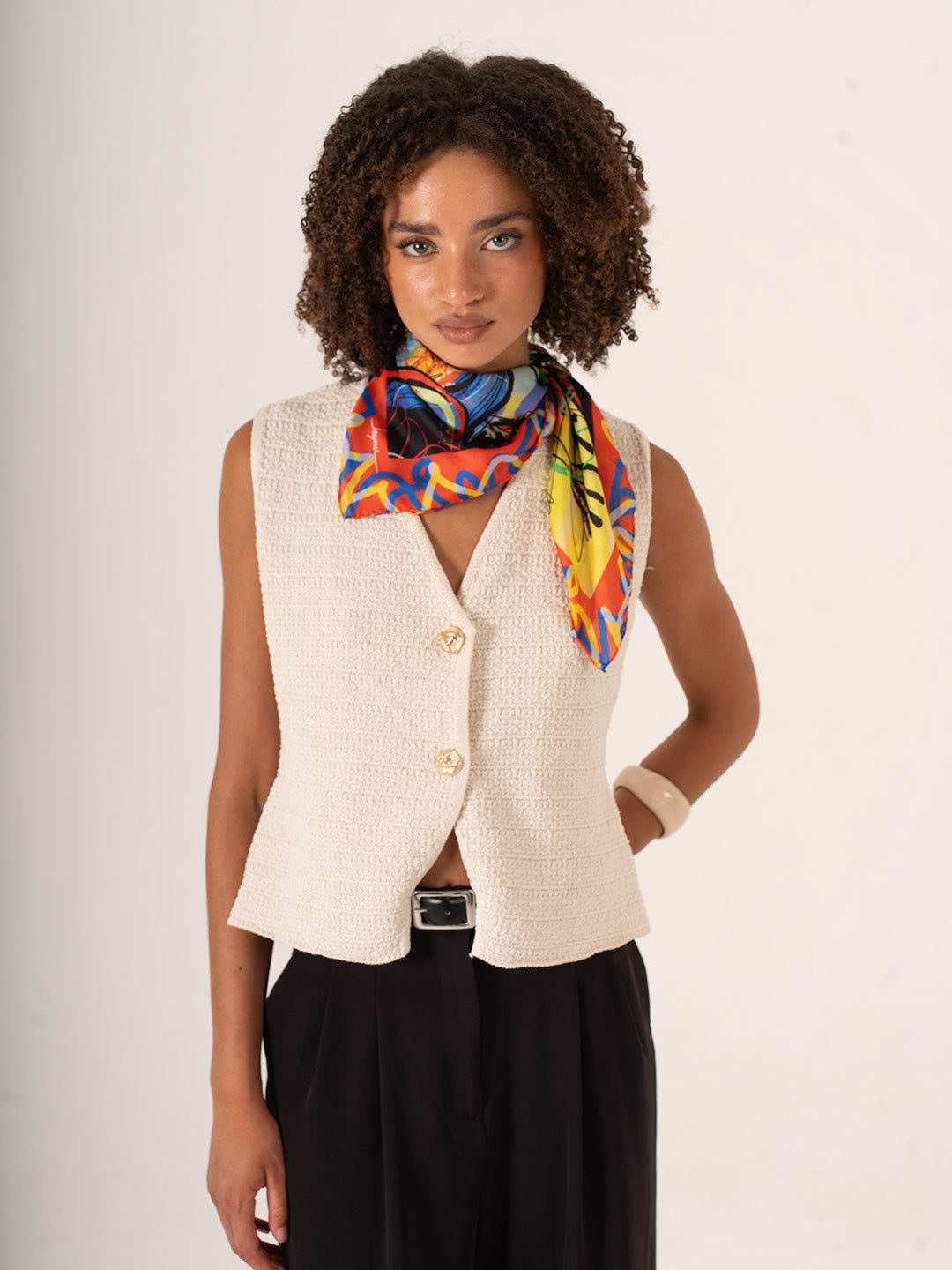 68x68 cm ölçüsündeki kompakt ve şık yapısıyla boynunuzda zarif bir dokunuş, saçlarınızda bohem bir detay ya da çantanızda sanatsal bir ifade olarak kullanılabilir. Hafif alfa silk kumaşı gün boyu rahatlık ve dökümlü bir görünüm sunar.