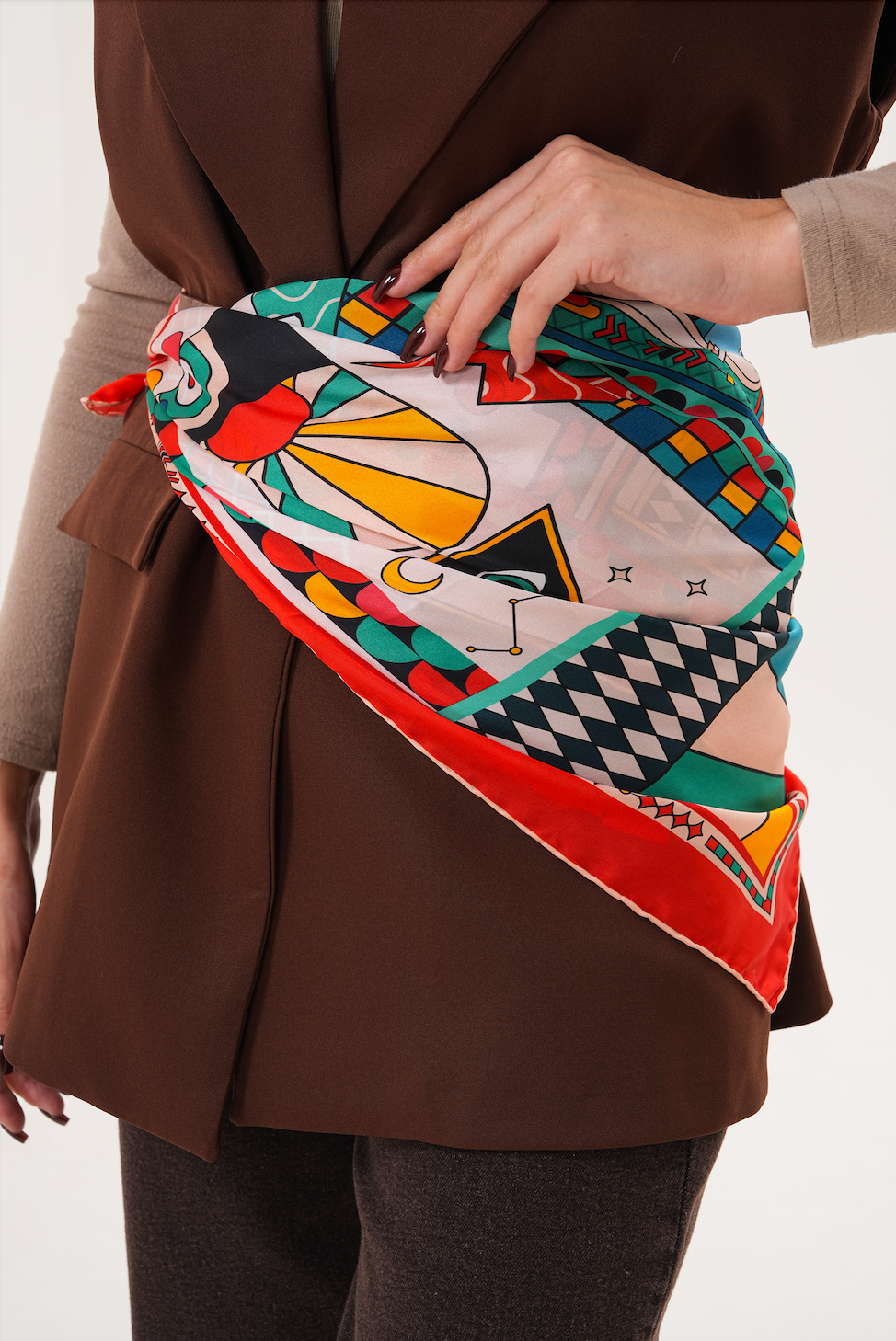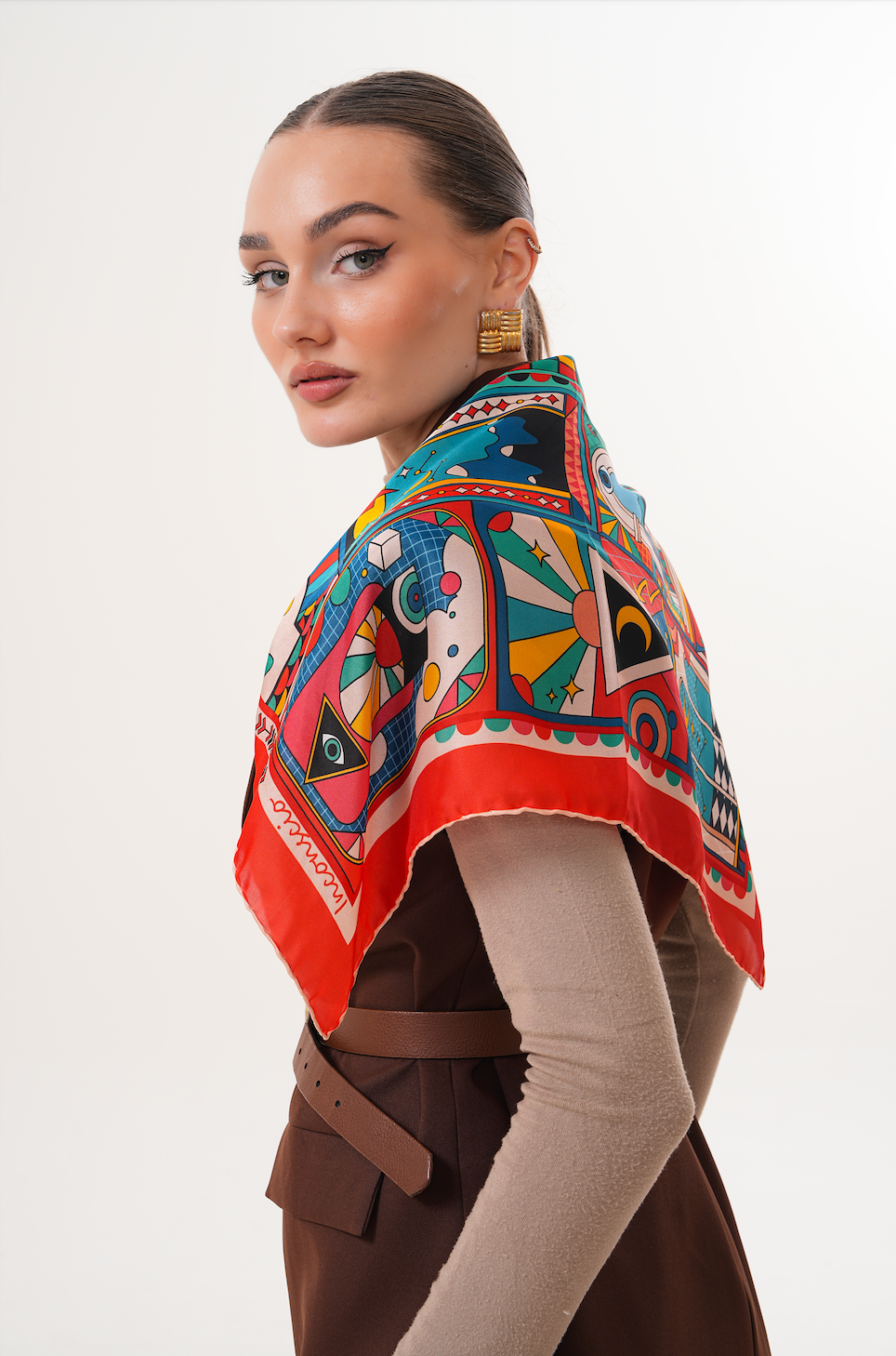 Inconscio fular, şıklığı sanatsal bir ifadeyle buluşturan özgün tasarımıyla gardırobunuzun özel parçalarından biri olacak.