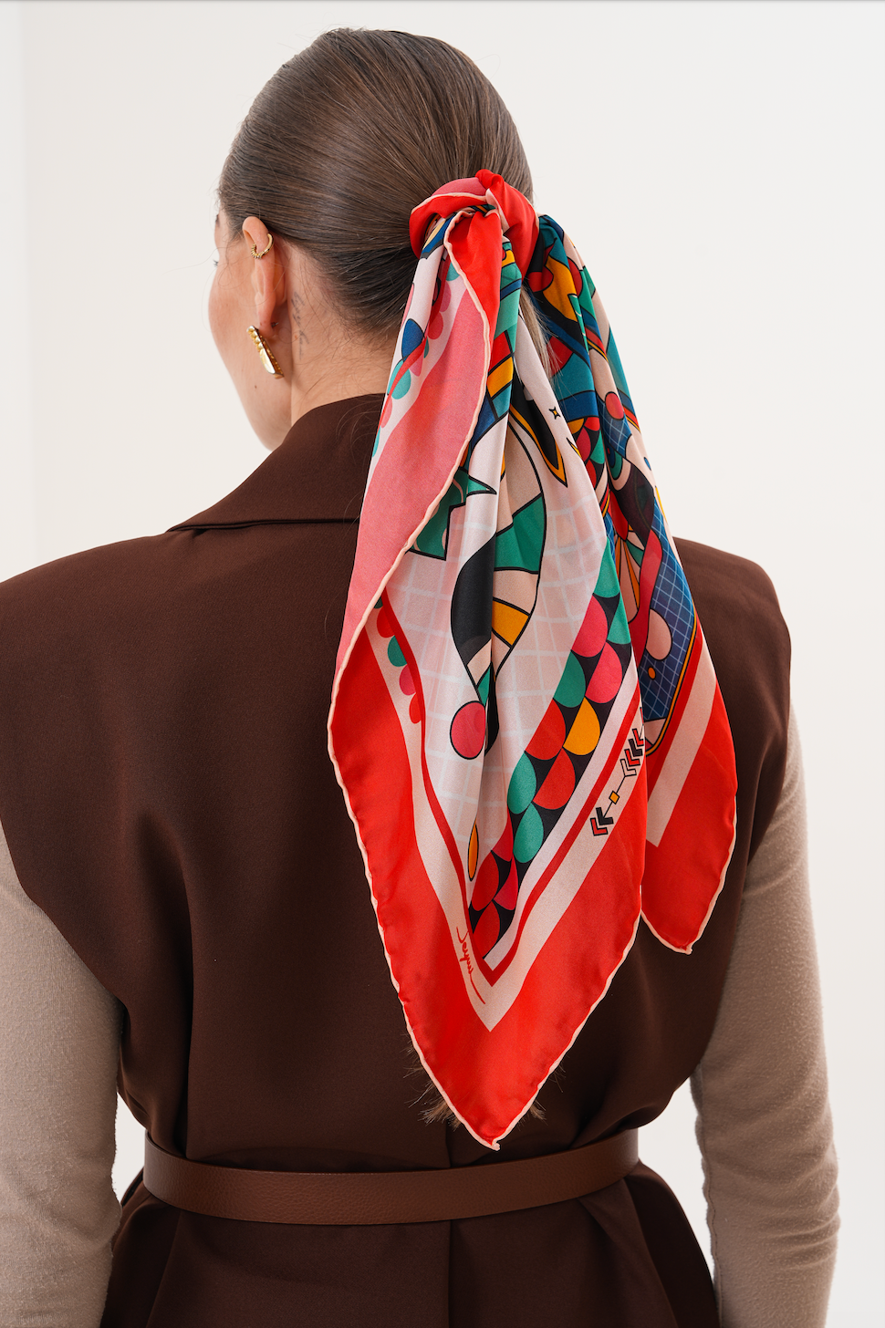 68x68 cm ölçüsü sayesinde boyun, saç, çanta sapı veya bilek aksesuarı olarak çok yönlü kullanım imkânı sunar. Nefes alabilen, hafif ve cilt dostu yapısı sayesinde dört mevsim konforla kullanılabilir.