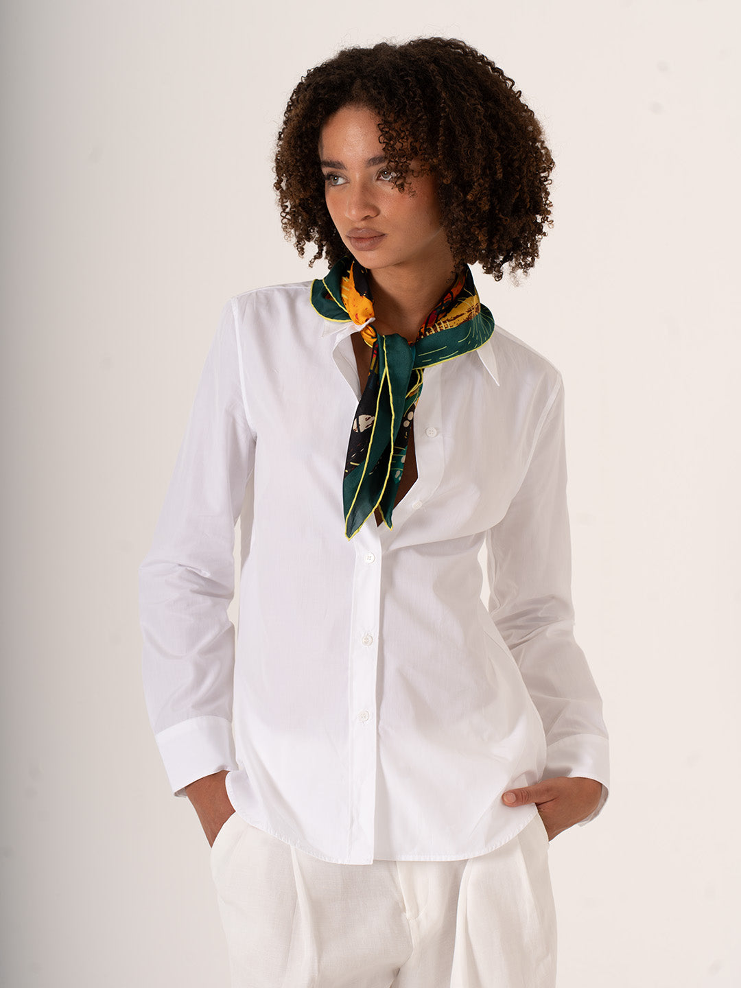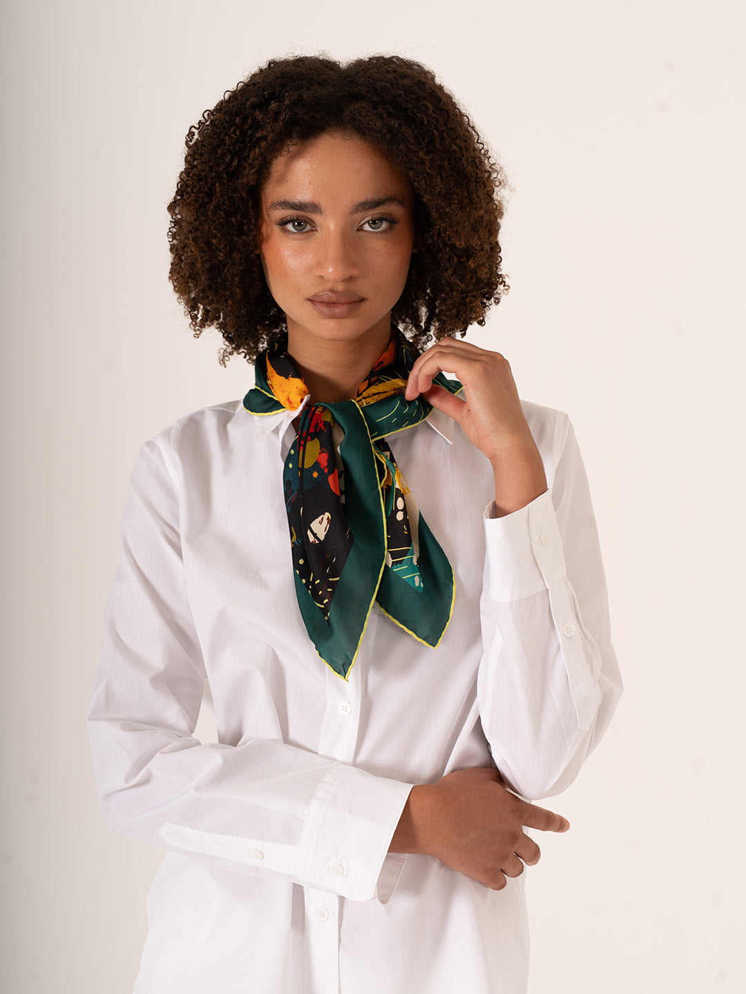 68x68 cm ölçüsündeki boyutuyla ister boynunuzda, ister saçınızda, ister çantanızda kullanabileceğiniz çok yönlü bir parçadır. Hafif alfa silk kumaşı ise dökümlü yapısı ve ipeksi dokusuyla gün boyu konfor sağlar.