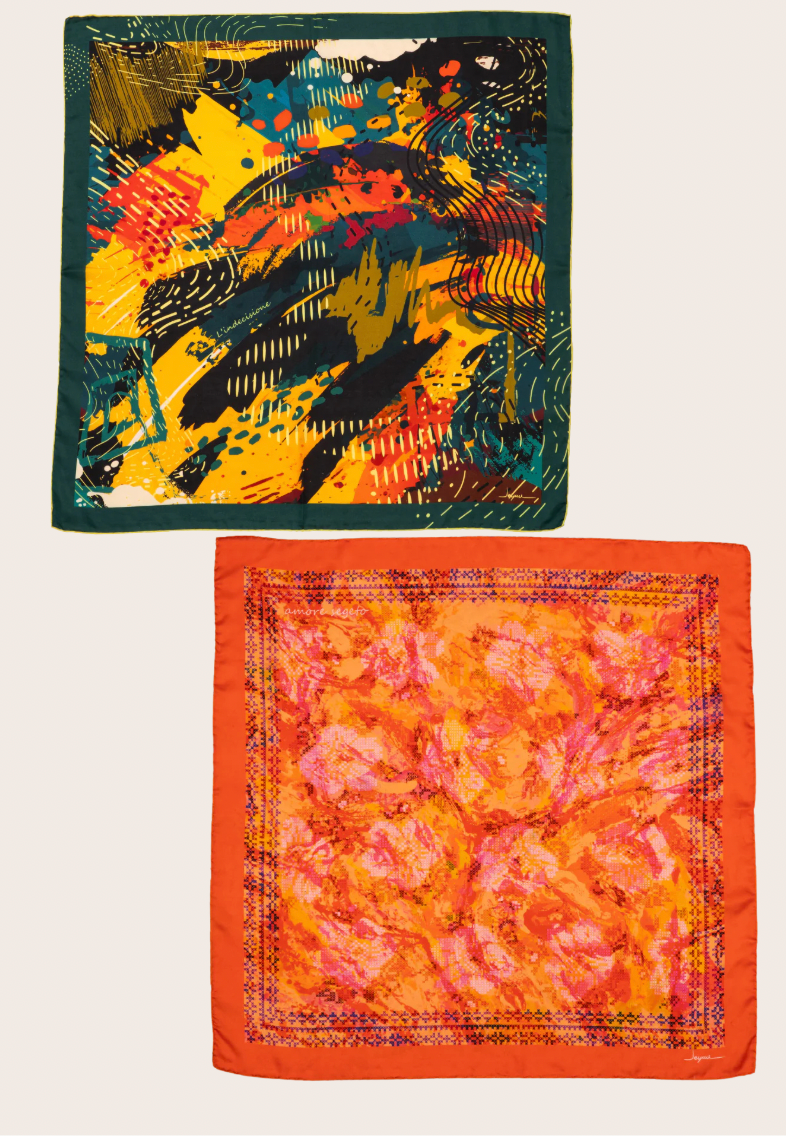 Amore Segreto, renklerin uyumu ve desenlerin zarif akışıyla duyguların yumuşak geçişlerini modern bir dille anlatırken; L’Indecisione iki adım arasında kalan anların, kararsızlığın ve “belki”lerin soyut bir ifadesi olarak tasarlandı. Biri duyusal bir zarafeti öne çıkarırken, diğeri net olmayan hislerin estetik karmaşasını yansıtıyor.