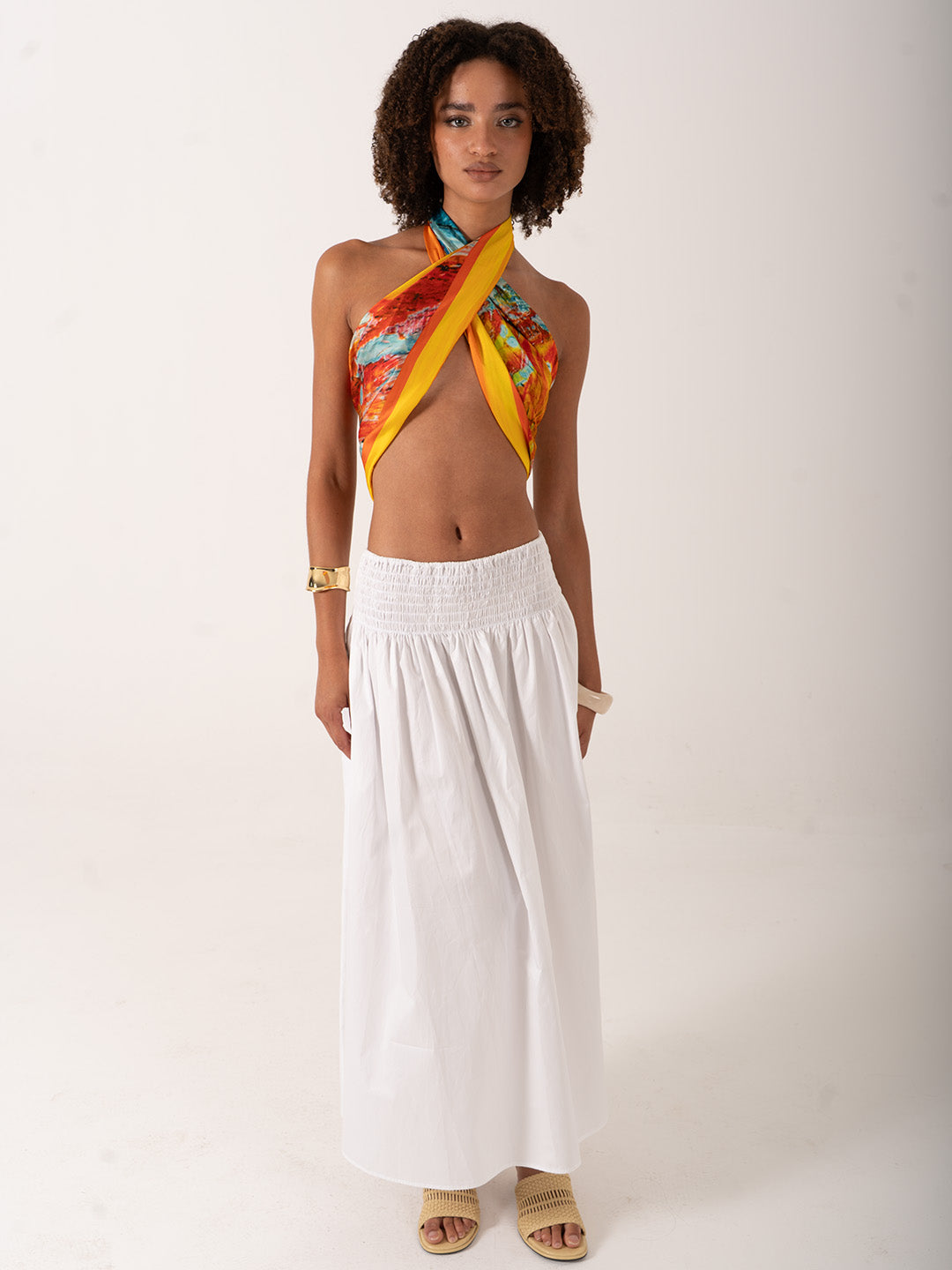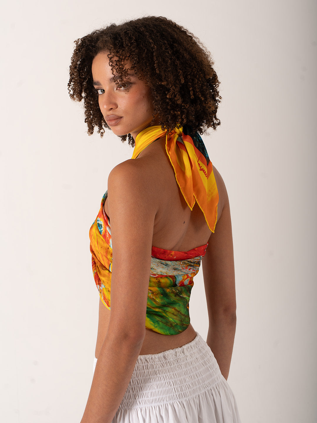 123x123 cm genişliği sayesinde yalnızca bir aksesuar değil, stilinize yön veren bir ifade biçimi sunar. Boyun fuları, pareo, saç aksesuarı, üst giyim tamamlayıcısı veya şık bir omuz örtüsü olarak kullanabilirsiniz. Hafif alfa silk dokusu gün boyu rahatlık ve akışkanlık sağlar.