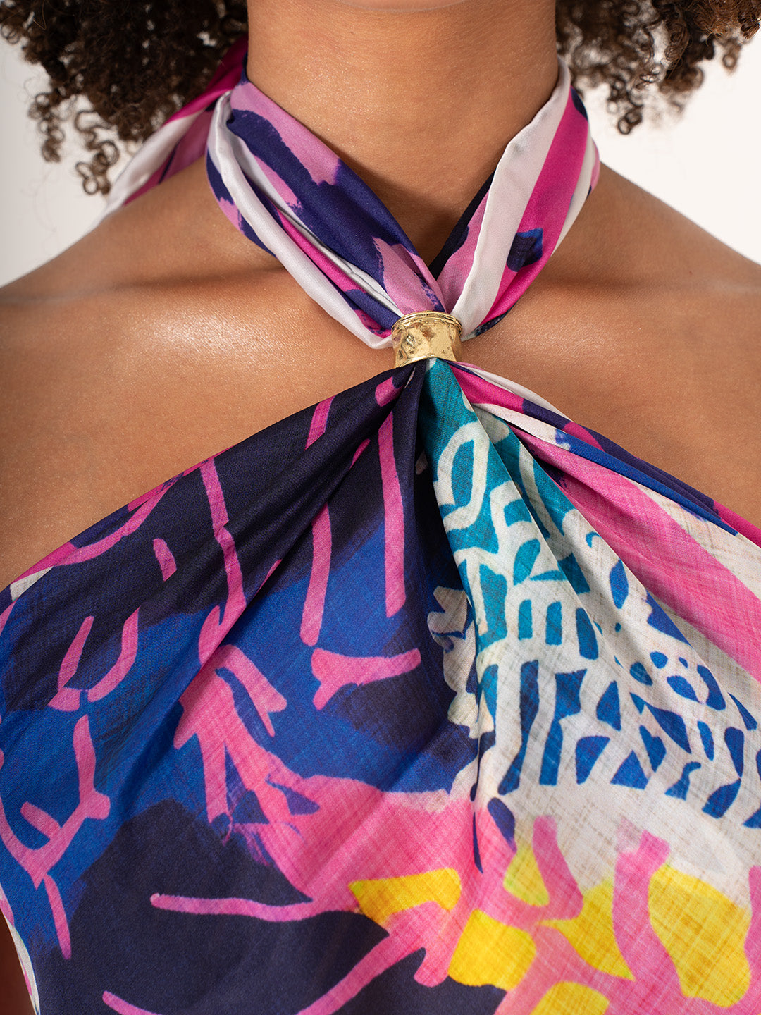 Geniş 123x123 cm ölçüsü sayesinde boyun, omuz, saç, şal veya pareo olarak çok yönlü kullanım imkânı sunar. Nefes alabilen, hafif ve cilt dostu yapısı dört mevsim konfor sağlar.